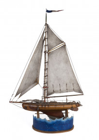 Lot Description:A French model pond yacht on hand-painted stand, circa 1940s