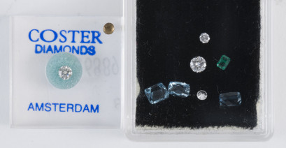 Lot #874 - Four loose cut diamonds an emerald and three aquamarines