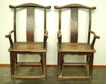 A pair of yoke-back armchairs made from Cypress (Bai-Mu) and Elm (Yu-Mu), Qing dynasty.