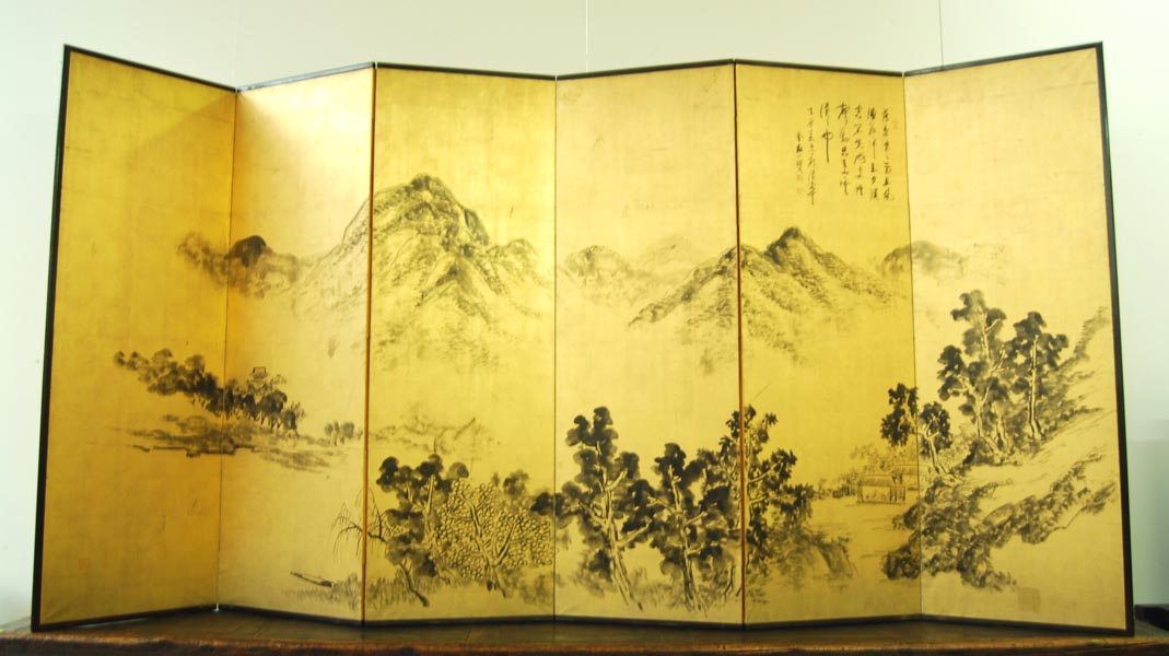 Lot Description:Japanese Six Panel Screen, Late Meiji Period C1910