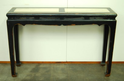 Black lacquer altar table with marble inset.