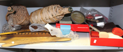 large quantity of jewellery boxes, and cane bound glass wine bottles etc. -