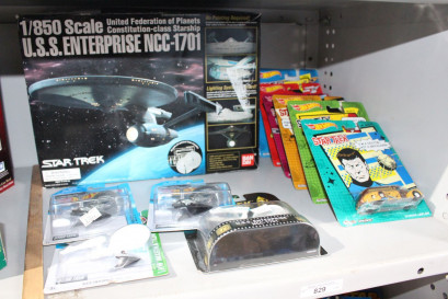 and 4 x packaged spaceships incl. Enterprise and Vengeance together with a Bandai USS enterprise kit 1/850 scale, all in original boxes and packaging -