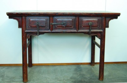Three drawer lacquered Elm writing table. Classic Ming design.
