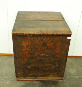 Solidly constructed painted rice storage bin from Gansu province, made from pine (Song - Mu).