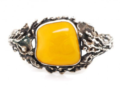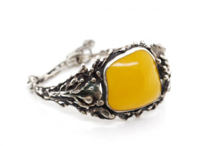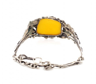 Lot Description:Egg yolk amber set silver cuff bracelet