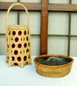 W) 32cm x H) 9cm x D) 28cm. Bamboo flower (ikebana) basket W) 21cm x H) 50cm x D) 19cm -