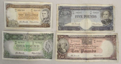 Lot Description:Four Australian Coombs/Wilson predecimal banknotes