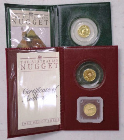Lot Description:Three Australian $5 gold "Nugget" proof coins