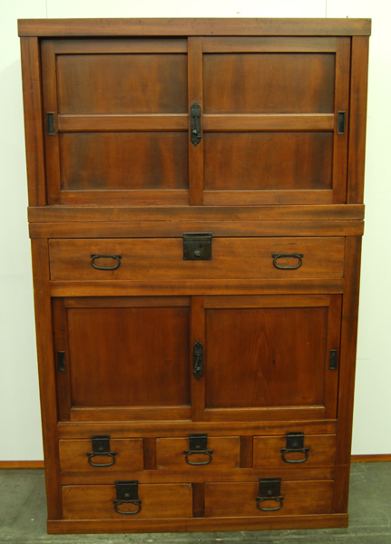 Gifu style (choba - dansu) merchant's storage chest made from cypress, cedar and cherry (Sakura) woods, for storage of documents, papers and receipts.