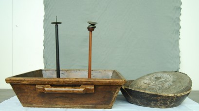 Lot #346 - 3 Wooden Bowls & 2 Candle Stands. C19th / C20th.