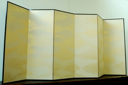 Six panel plain screen with sprinkled gold on paper and a black lacquer frame.