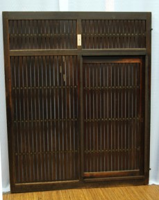 Rare slatted lacquered cypress wood panel with an inbuilt smaller slatted sliding door.