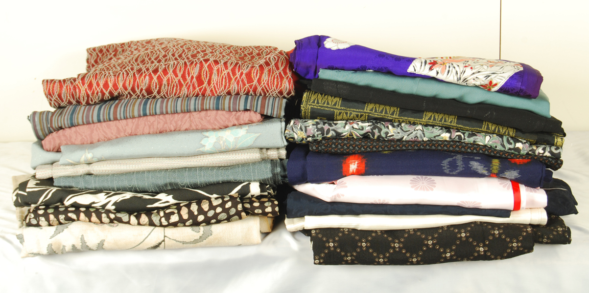 Twenty mixed silk, synthetic, wool, cotton kimono -