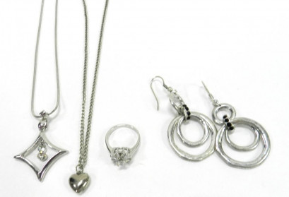 Lot Description:A Collection of Silver Plated Jewellery including a Heart Necklace & Cubic Zirconia Necklace & Ring