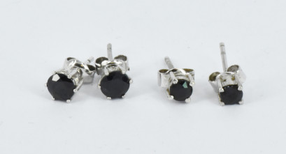 sterling silver set with deep dark blue sapphires. Weight 2g -