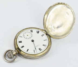 sterling silver case, in working order, one hand only. , Birmingham, 1917. the interior engraved 'F.A.S.C. MacRobertsons, Junior Championship Won by C.T. Chapman 1919'. -