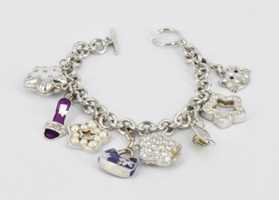 with enamel set charms, T-bar clasp. Weight 61.8g -