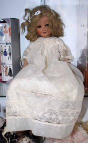 flirty brown eyes, blonde mohair wig. Height 51cm. -