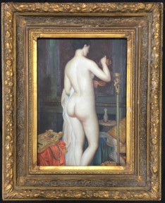 Lot Description:A Reproduction of An Early Victorian Gilt & Gesso Picture Frame with European School (20th Century) Nude Backview