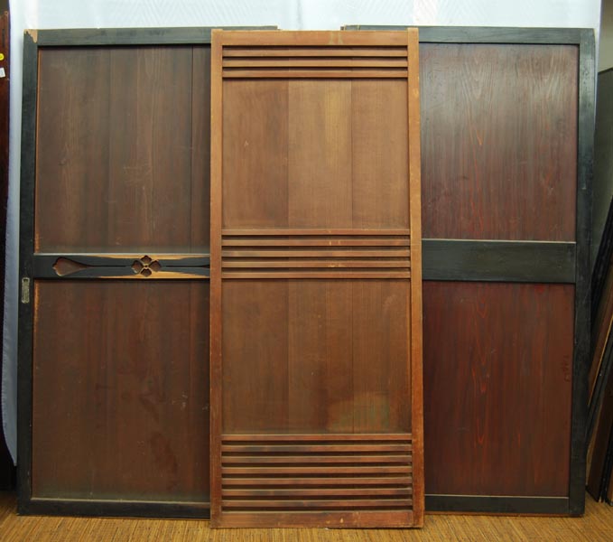 Three Japanese black lacquer sliding doors made from cypress and cedar, two pairs of varying style.