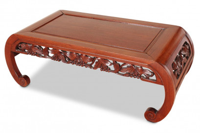 with rectangular top, above a pierced and vine-carved frieze and sides, all raised on curved legs, h 33.5cm x w 96cm x d 45cm -