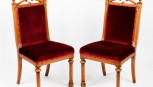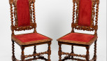 Lot #514 - Two pairs of red velvet upholstered carved oak hall chairs, English 19th century