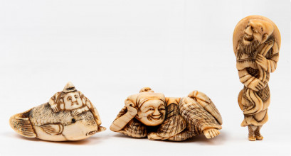 Lot Description:Three ivory figure netsuke, 19th century