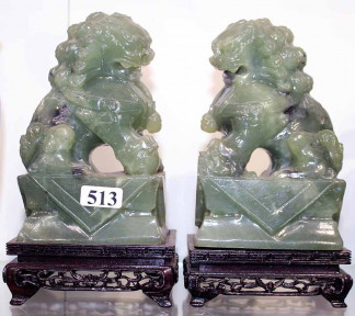 Lot #513 - A Pair of Carved Stone Temple Dogs