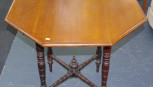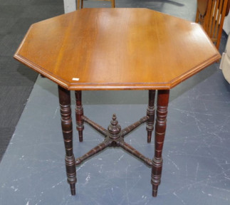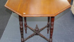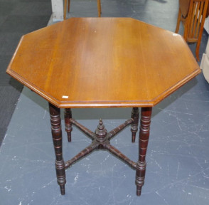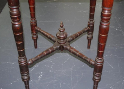 turned legs, decorative base and stretchers, (height 76cm, diameter 80cm approx). -