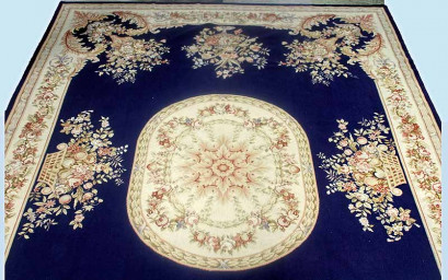 the central ivory medallion with wonderfully detailed floral emblems on a deep blue field enclosed by a wonderful encroaching border. 253 x 352cm -