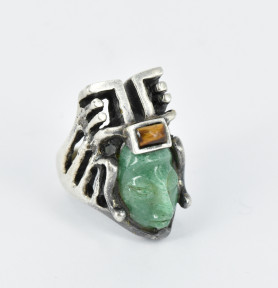Lot Description:A Mexican Silver and Amazonite Figural Ring