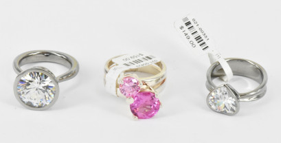 set with pink and colourless man made stones, including CZ. Size P, O, M. Weight 28g -