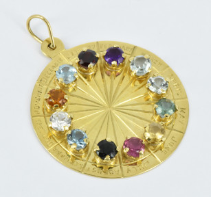 set with multiple gems, including quartz and garnets, on 18ct yellow gold. Diameter 3.8cm. Weight 10.8g. -