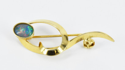 opal doublet set on silver with gilt finish. Length 4cm. Weight 2.7g. -