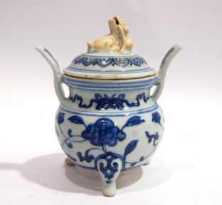 Lot Description:A Fine Underglaze Blue Censer, with 'Heaven Soaring Handles' in the Ming Style, Qing Dynasty