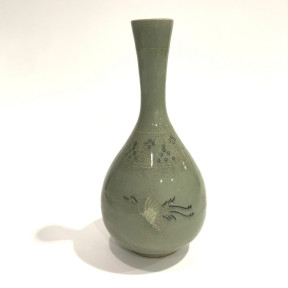 Lot #299 - A Fine Korean Bottle Shaped Vase, with a Celadon Glaze & Flying Cranes