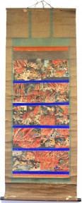 Lot #319 - A Japanese Woodblock Hanging Scroll Prints Painted with Watercolour of Eighteen Levels of Hell