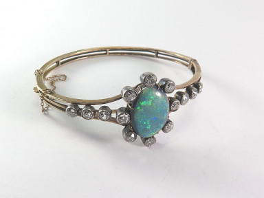Lot Description:An Edwardian Opal And Diamond Hinged Bangle
