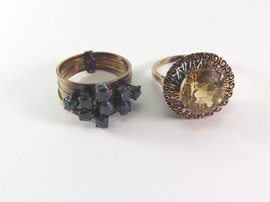 one set with sapphire, the other with citrine. (2) Total weight 10.5g. Sizes P & M. -