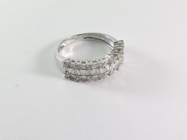 with baguette-cut diamonds and brilliant-cut diamonds in 18ct white gold. Size L. -