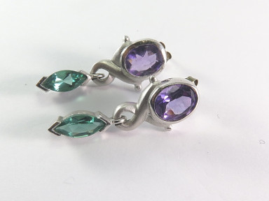 Lot #365 - A Pair of Amethyst And Silver Earrings