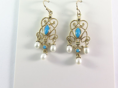 Lot Description:A Dainty Pair of Turquoise And Pearl Drop Earrings