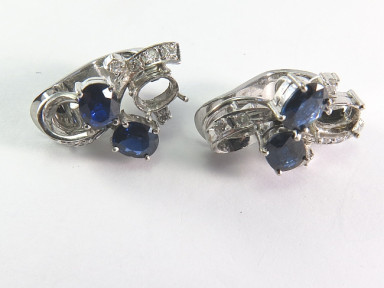 Lot #405 - A Pair of Sapphire And Diamond Ear-Clips