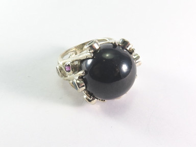 Lot Description:A Cabochon Onyx And Gem-Set Silver Dress Ring