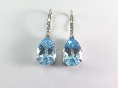 Lot Description:A Pair of Blue Topaz And Silver Drop Earrings