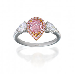 Of cluster design centring a claw-set pear modified brilliant-cut Argyle natural fancy orangy pink diamond weighing 0.75 carat, framed by a line of Argyle natural fancy pink brilliant-cut diamonds flanked by a near colourless pear-shaped diamond, to shoulders decorated with near colourless brilliant-cut diamonds, the small pink diamonds, the pear-shaped diamonds and the small near colourless diamonds together stated to weigh 0.11 carat, 0.52 carat and 0.11 carat respectively, size M½. -