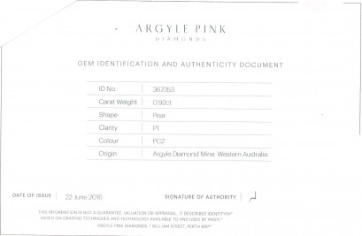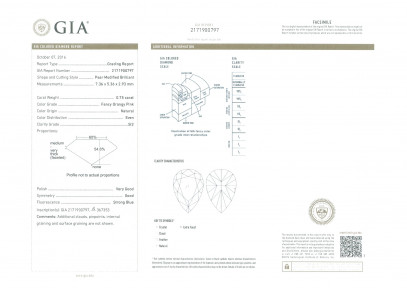 Notes:Accompanied by: an Argyle Pink Diamonds Gem Identification and Authenticity Document numbered 367353, dated 22 June 2016; a GIA report numbered 2171900797, dated 7 October 2016, stating that the 0.75 carat diamond is Natural Fancy Orangy Pink colour and SI2 clarity, laser inscribed GIA 2171900797 and Argyle 367353.