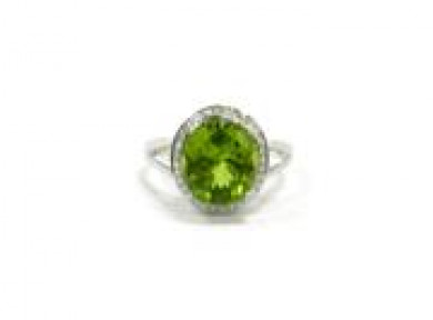 Lot Description:An 18ct White Gold Peridot & Diamond Ring