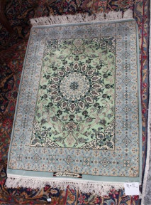 floral detail on a palre green and blue ground, signed to border, 117 cm x 85 cm -